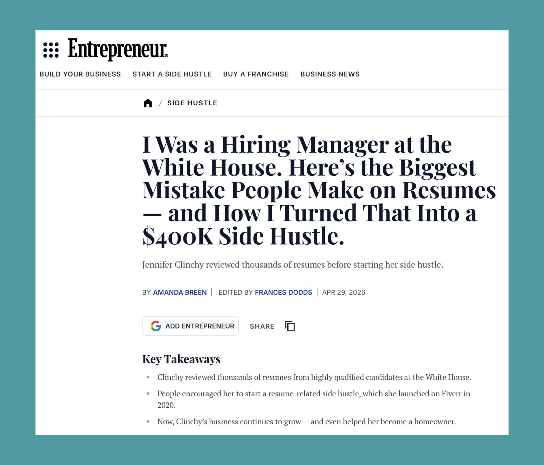 This morning, Entrepreneur.com published an article about how I built my resume writing business from scratch into a $400,000 company. Here are some of the tips I shared in the article about how to start a successful side hustle.